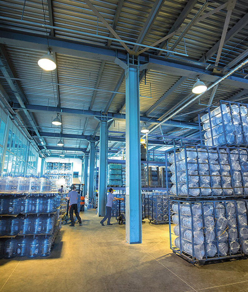 After the initial preparation, the water enters the preliminary storage tanks, from where it then enters for bottling