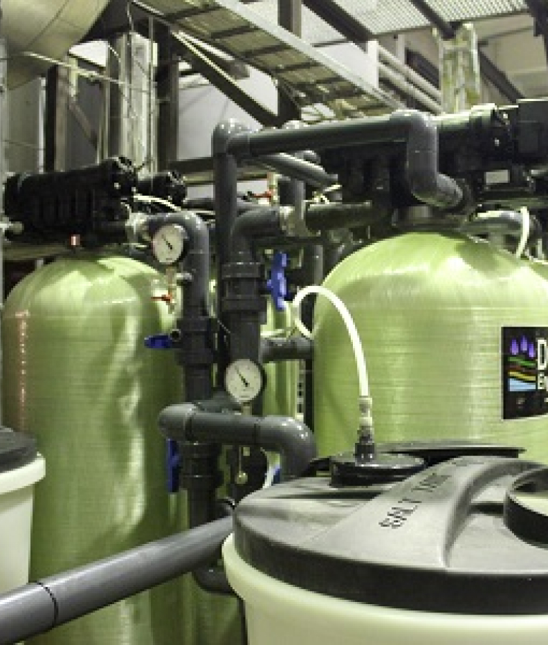 Water enters the water treatment area. Excess iron, calcium and magnesium salts are removed from its composition